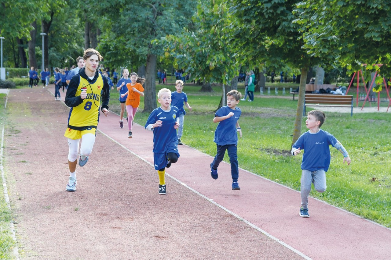 A beszélgetés után a jelenlegi tagok egy látványos produkcióval kápráztatták el a közönséget. Ezután tanárok, diákok, szülők és az iskola sportkedvelő támogatói együtt mentek az Ifjúsági Parkba. Több mint 500-an gyülekeztek, hogy teljesítsék a jubileum jegyében kijelölt futótávot: pontosan 1975 métert - utalva az iskola alapításának évére. A közös bemelegítést a gimnasztrádás lányok vezették, majd a résztvevők együtt indultak neki a körnek - ki futva, ki gyalog.