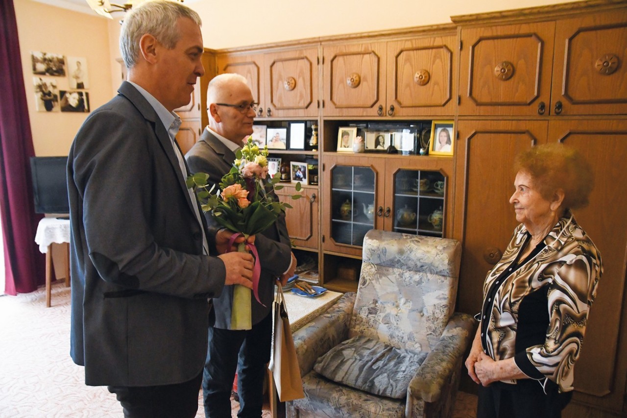 - Nagyon boldog vagyok és nagyon szerencsésnek érzem magam, hogy ilyen szép és összetartó családom van - mutat a szekrényeken álló fotókra a születésnapos. - Imádom őket. Mindent megtesznek értem és én is igyekszem mindent megtenni értük. Sajnos mindkét lányom elkerült messzire, az ország másik felében laknak, de sokat beszélünk telefonon és amikor csak tudnak meglátogatnak. Azt sajnálom, hogy a férjem ezt már nem élhette meg, nagyon hamar egyedül maradtam, a férjem 71 évesen ment el - mondja elérzékenyülve. - De igyekszem elfoglalni magam, szerencsére nem vagyok egy unatkozós fajta. Minden nap meleg ételt eszek, én magam főzök. Megyek a boltba, bevásárolok, mosok, takarítok, vasalok. Teljesen ellátom magam, mindent megcsinálok, amit egy ilyen kis lakásban meg lehet.