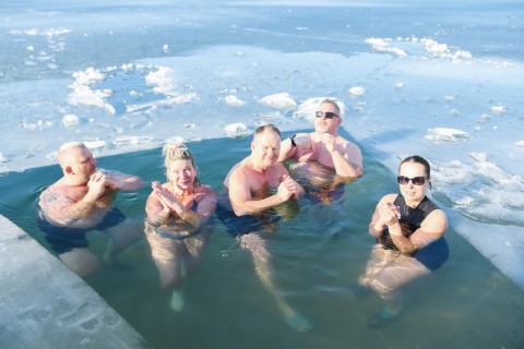 Mínusz 9 fok, vasárnap dél. A nap legmelegebb időszaka, bár ezt két réteg ruhában sem érzem a hejőkeresztúri tó partján ácsorogva. Szerencsémre szikrázó napsütés van, mintha érezném is a nap melengető sugarait. Bár ez sem sokat segít. Érkezik egy csapat, ki autóval, ki gyalog, köntösben, papucsban és rövidnadrágban. Zokni senkin sincs, minek is, úg...