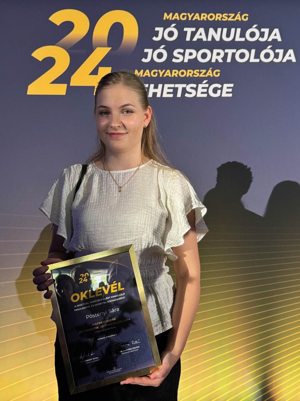 maraton Európa-bajnokságon ifjúsági C1-ben bronzérmet nyert. Pöstényi Sára 9. H osztályos tanuló a „legjobbak legjobbikai" között vehette át dr. Schmidt Ádám sportért felelős államtitkártól a Magyarország jó tanulója, jó sportolója 2024 díjat.