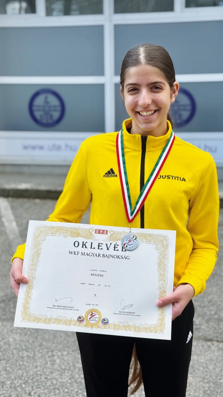 KARATE. Budapesten rendezték meg a WKF Magyar Karate Bajnokságot, ahol szombaton a felnőttek, míg vasárnap a 14 éven alattiak mérték össze erejüket. Lány Kata 12-13 évesek kategóriában nyolcan indultak, ahol az első két fordulót követően a Justitia Fuji-Yama SE tiszaújvárosi versenyzője, a 12 éves Lukács Mariska idén is a döntőbe jutott, majd 4-1-es pontozással alulmaradt ellenfelével szemben, így a múlt évi bajnoki címet követően idén ezüstérmet szerzett.