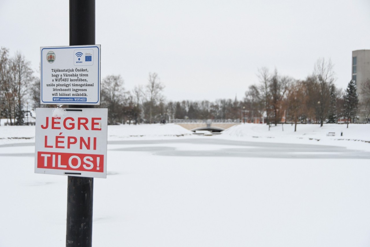 Felhívjuk a városközponti tóhoz látogatók figyelmét, hogy a tó felületén képződött jégréteg az egyenetlen vastagodás miatt fokozottan balesetveszélyes. A jégre lépés, és az azon való tartózkodás tilalma a tópart mentén lévő sétányok több pontján elhelyezett táblákon is látható. A tó jegén tartózkodók - amellett, hogy testi épségüket, életüket veszélyeztetik - szabálysértést követnek el. Kérjük a szülőket, barátokat, ismerősöket, a tóhoz látogatókat, hogy a tragédiák megelőzése érdekében figyelmeztessék a veszélyre a gyermekeket, illetve a tiltás ellenére a tó jegén tartózkodókat.