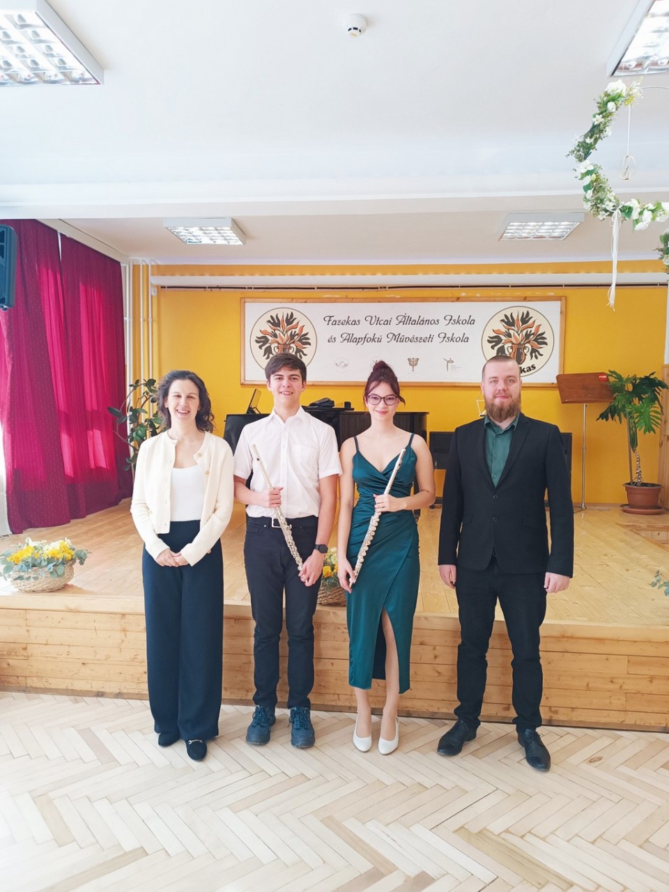 Cserépfalun rendezték meg a IV. Térségi Rézfúvós Minősítőversenyt, ahol fantasztikus eredmények születtek. Czap Zsófia Dóra korcsoportjában trombitán arany minősítést és különdíjat, Szabolcsi Ádám arany minősítést ért el. Bacsik Dominik István tenorkürtön és Berki Benjámin harsonán ezüst minősítést, Nagy Zétény vadászkürtön bronz minősítést kapott (felső kép). Miskolcon a B-A-Z vármegyei zeneiskolák IX. fuvolaversenyén is kiválóan szerepeltek a Vándor Sándor Zeneiskola tanulói. Tóth Gabriella 2. helyezést ért el, Rontó Dávid, bár helyezést nem ért el, de így is nagyon szépen teljesített egy rendkívül erős mezőnyben (alsó kép). Szívből gratulálunk a résztvevőknek, köszönjük a diákok és felkészítő tanáraik, Lakatos Veronika, Bereznay András és Horváth Előd Kelemen, valamint a zongorakísérő Petró Csaba Zoltán áldozatos munkáját.